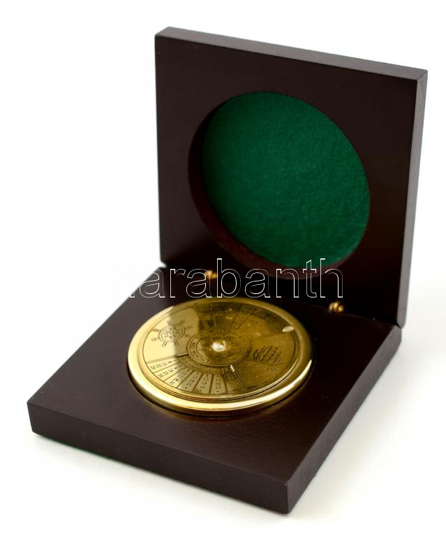 Réz öröknaptár fa tokban 9x9 cm https://www.darabanth.com/de/286-Fernauktion/286.0/Andere-Sammelgebiete/Flohmarkt~11/Rez-oroknaptar-fa-tokban-9x9-cm~II1501645