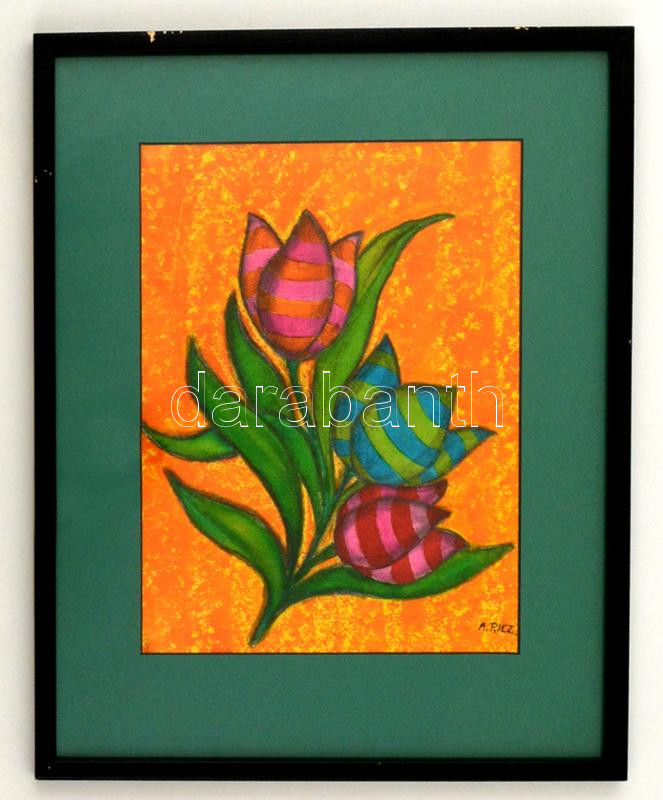 Beschreibung: Riez A. Béla (1901-?): Cím nélkül. Pasztel karton. Jelzett, 1976. üvegezett keretben 35x43 cm