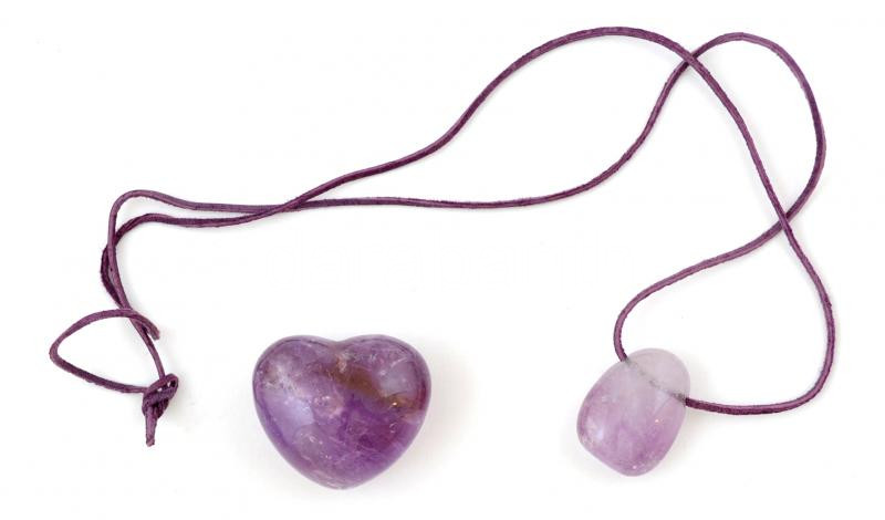 Beschreibung: Ametisz szerű üveg medál, 2×1,5 cm, hibátlan + szív, apró csorbával 4×3 cm