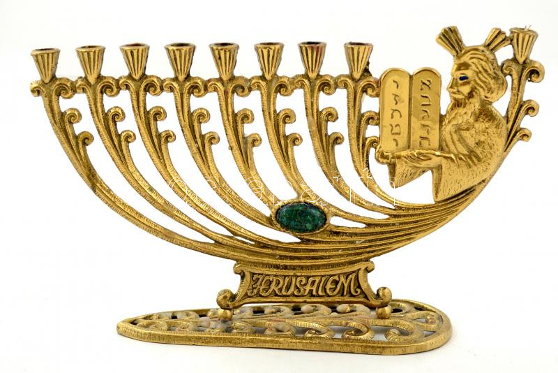 Beschreibung: Hanukiah gyertyatartó, réz "Jerusalem" felirattal, m:13, h:23 cm