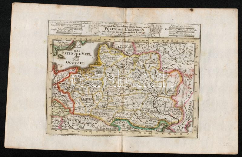 cca 1700 Lengyelország és Bajororoszág térképe. Das Baltische Meer oder die Ostsee. Johann Hofmann: Díszes kartusú, színezett rézmetszet. Megjelent: Atlas Curieux oder neuer und Compendieuser Atlas. (Augsburg, 1700?). Méret: 29x20 cm / cca 1700 Map of the Baltic Sea and Poland and Prussia Colored etching 31x20 cm