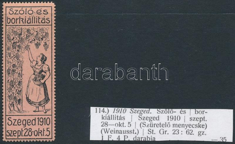 1910 Szeged Szőlő és bor kiállítás levélzáró https://www.darabanth.com/de/286-Fernauktion/286.0/Andere-Sammelgebiete/Paraphilatelie~13/1910-Szeged-Szolo-es-bor-kiallitas-levelzaro~II1498556