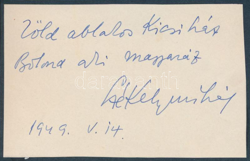 1949 Székely Mihály (1901-1963) operaénekes aláírása és sorai egy kart... https://www.darabanth.com/de/286-Fernauktion/286.0/Andere-Sammelgebiete/Signatur~18/1949-Szekely-Mihaly-1901-1963-operaenekes-alairasa-es-sorai-egy-kartonlapon-6x10-cm-auto~II1496142
