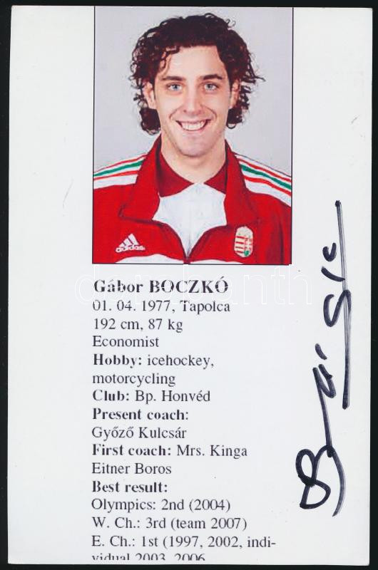 Boczkó Gábor (1977-) olimpiai ezüst-, és bronzérmes, világ-, és Európa... https://www.darabanth.com/de/286-Fernauktion/286.0/Andere-Sammelgebiete/Signatur~18/Boczko-Gabor-1977-olimpiai-ezust--es-bronzermes-vilag--es-Europa-bajnok-parbajtorvi~II1499821