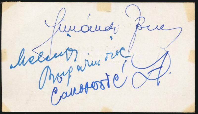 Beschreibung: Simándy József (1916-1997) és Melis György (1923-2009) operaénekesek és két ismeretlen aláírása