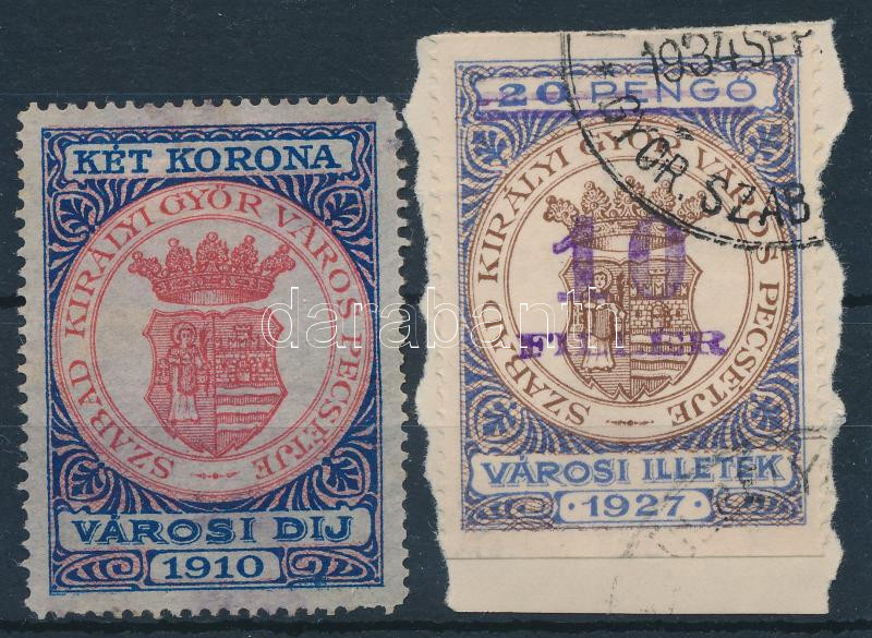 Beschreibung: 2 klf Győr városi illetékbélyeg