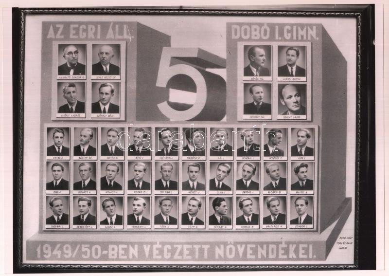 1950 Eger, a Pedagógiai Gimnázium végzős növendékei, kistabló 42 nevesített portréval, a Fotó-GRÁF műteremben készült vintage üveglemez negatív mai nagyítása, 18x25 cm