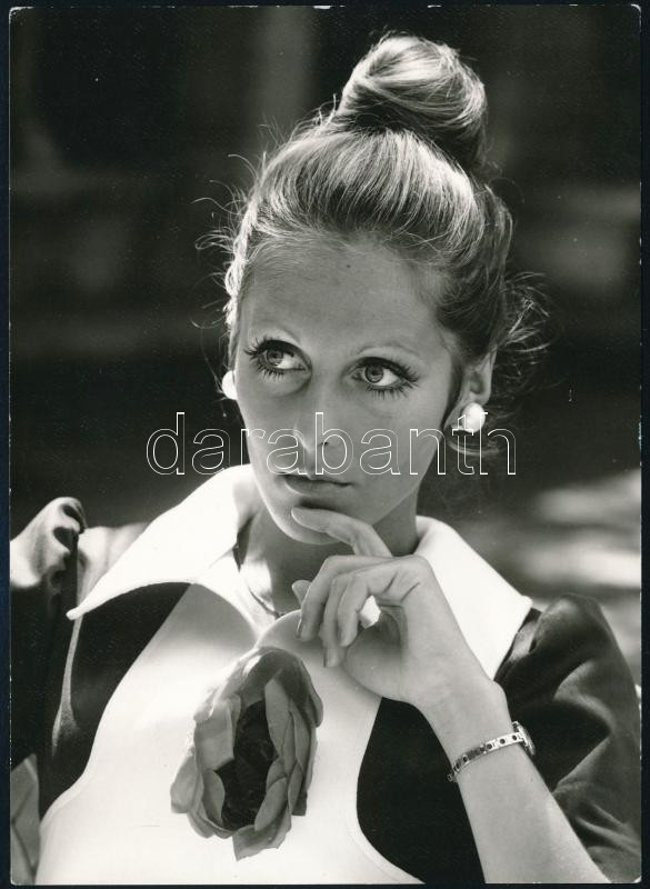 Beschreibung: Pataki Ágnes (1951- ) modell portréja, fotó, hátulján feliratozva, pecséttel jelzett, 17,5×12,5 cm
