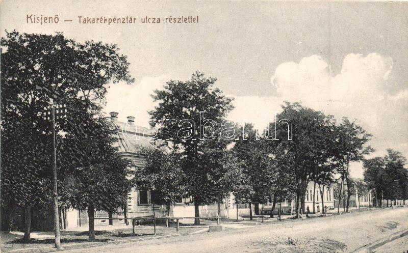 Beschreibung: Kisjenő, Chisineu-Cris; Takarékpénzár utca részlettel / savings bank, street (EB)