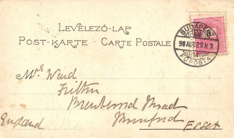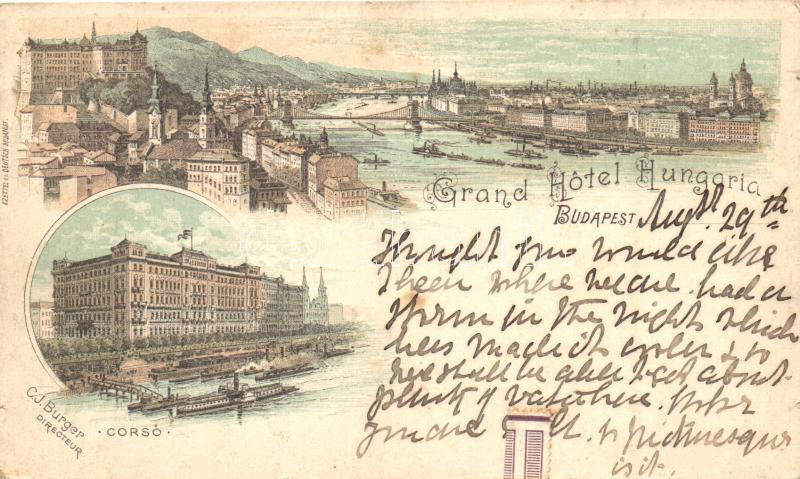 Beschreibung: 1898 Budapest, korzó, látkép, Grand Hotel Hungária, Czettel és Deutsch floral litho (ragasztónyom / glue mark)