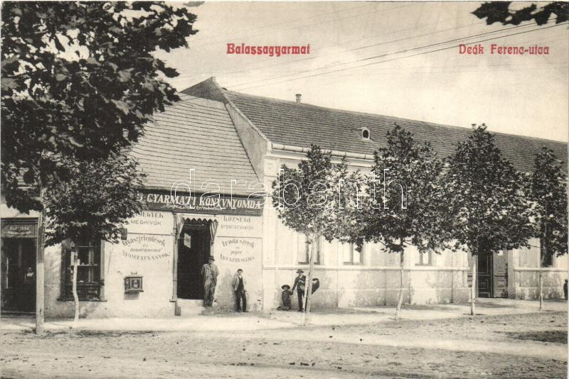 Beschreibung: Balassagyarmat, Deák Ferenc utca, virágüzlet, Hollósy Géza Gyarmati-könyvnyomdája és saját kiadása