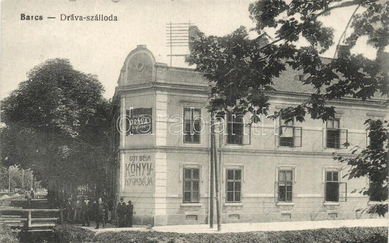 Barcs, Dráva szálloda, Gút Béla könyvnyomdája https://www.darabanth.com/de/286-Fernauktion/286.0/Ansichtskarten/Ungarn~200005/Barcs-Drava-szalloda-Gut-Bela-konyvnyomdaja~II1497424