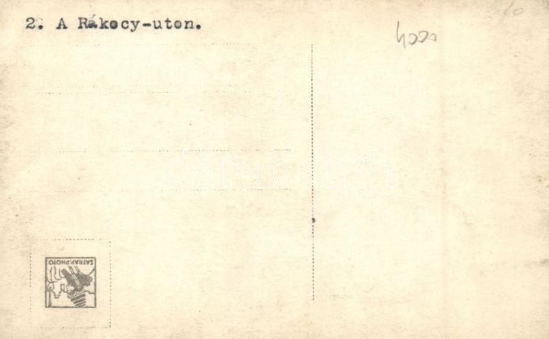 Beschreibung: Budapest VII. Rákóczi út, Cserkész felvonulás, Bihari, Guttman J. és Társa üzletei, Réthy drogéria, bőrönd ház, villamos, automobil, photo (EK)