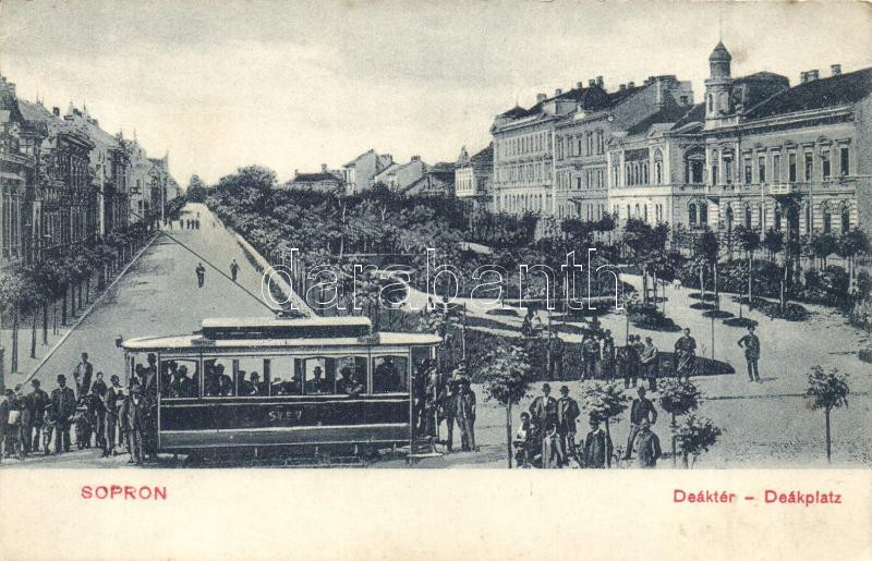 Sopron, Deáktér, villamos, Blum Náthán és fia kiadása (EK) https://www.darabanth.com/de/286-Fernauktion/286.0/Ansichtskarten/Ungarn~200005/Sopron-Deakter-villamos-Blum-Nathan-es-fia-kiadasa-EK~II1499734
