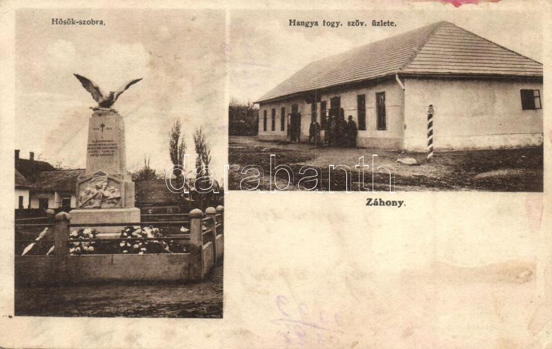 Záhony, Hősök szobra, Hangya üzlet (Rb) https://www.darabanth.com/de/286-Fernauktion/286.0/Ansichtskarten/Ungarn~200005/Zahony-Hosok-szobra-Hangya-uzlet-Rb~II1496398