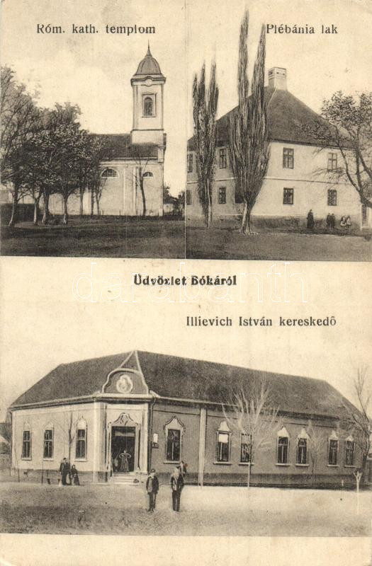 Bóka, Római katolikus templom és plébánia lak, Illievich István keresk... https://www.darabanth.com/de/286-Fernauktion/286.0/Ansichtskarten/Vojvodina~200010/Boka-Romai-katolikus-templom-es-plebania-lak-Illievich-Istvan-kereskedese-church-and-pari~II1496578