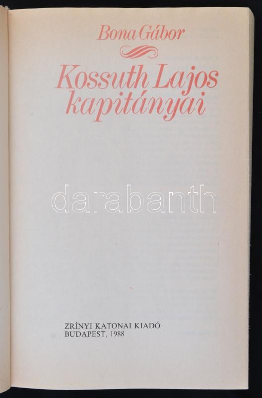 Bona Gábor: Kossuth Lajos kapitányai. Bp., 1988, Zrínyi Katonai Kiadó.... https://www.darabanth.com/de/286-Fernauktion/286.0/Bucher/Bucher-Militaria~35/Bona-Gabor-Kossuth-Lajos-kapitanyai-Bp-1988-Zrinyi-Katonai-Kiado-Kiadoi-egeszvaszon-ko~II1497529