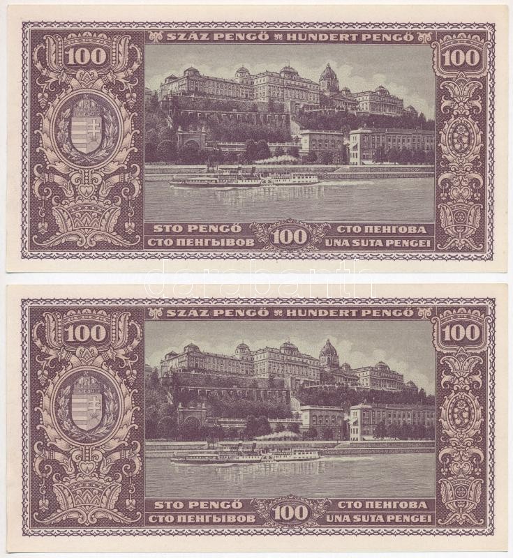 1945. 100P (2x) sorszámkövetők T:I https://www.darabanth.com/de/286-Fernauktion/286.0/Numismatik/Ungarische-Banknoten~400006/1945-100P-2x-sorszamkovetok-TI~II1497823