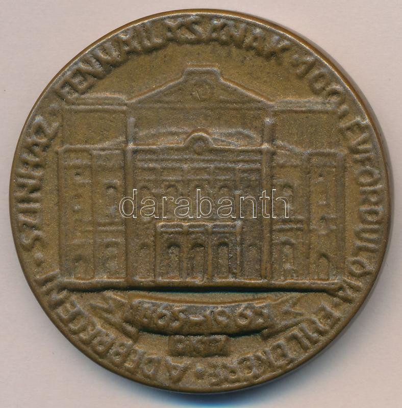 1965. "A Debreceni Színház fennállásának 100. évfordulója emlékére 1865-1965" Br emlékplakett (62mm) T:2