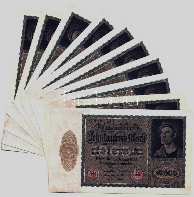 Beschreibung: Németország / Weimari Köztársaság 1922. 10.000M (4x) sorszámkövetők T:I-,II