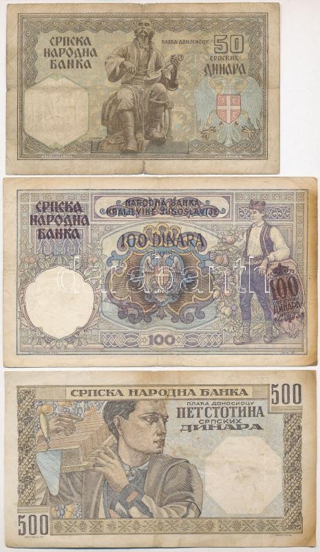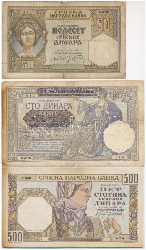 Serbia 1941. 50 Dinara + 1941. 500 Dinara + Serbia / German occupation 1941. 100 Dinara C:F