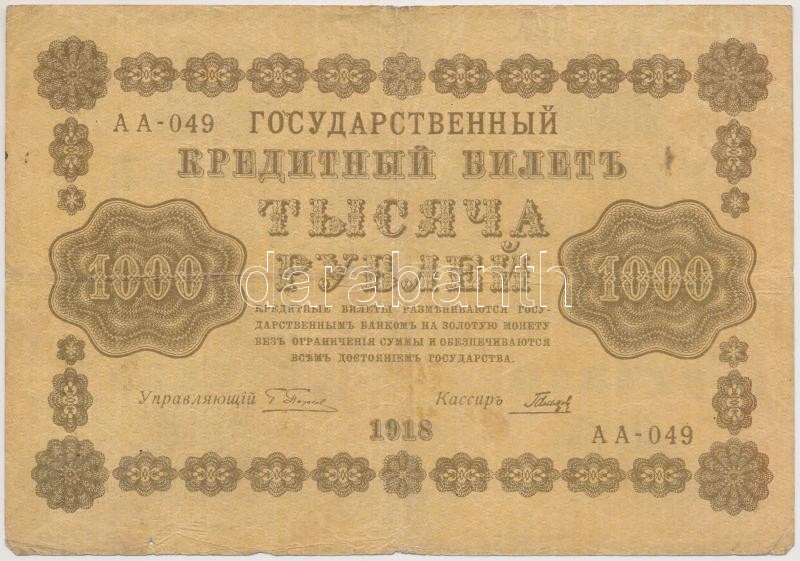 Szocialista Szövetségi Szovjet Köztársaság 1918. 250R + 500R + 1000R T... https://www.darabanth.com/de/286-Fernauktion/286.0/Numismatik/Weltweit-Banknoten~400011/Szocialista-Szovetsegi-Szovjet-Koztarsasag-1918-250R-plus-500R-plus-1000R-TIII-III-ly--Russian-So~II1496034