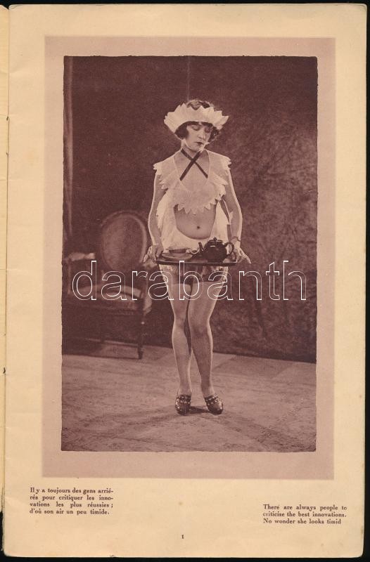 cca 1920 Les Jambes Savantes 24 oldalas, enyhén erotikus képeket tartalmazó füzet angol és francia szöveggel Címlapon hajtásnyom. / Les Jambes Savantes mildly erotic images in 24 page booklet with English and French texts 15x24 cm