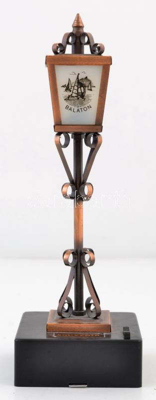 Beschreibung: "Balaton" feliratú szuvenír lámpa, fém-műanyag, működik, m: 23,5 cm
