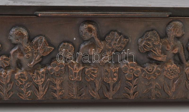 Beschreibung: Iparművészeti Vállalatos díszes réz doboz, fa belsővel, 22×22×7 cm