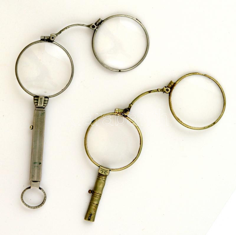 Beschreibung: Lornyon ( 2db), egyik rugója nem jó, h:8 és 11 cm