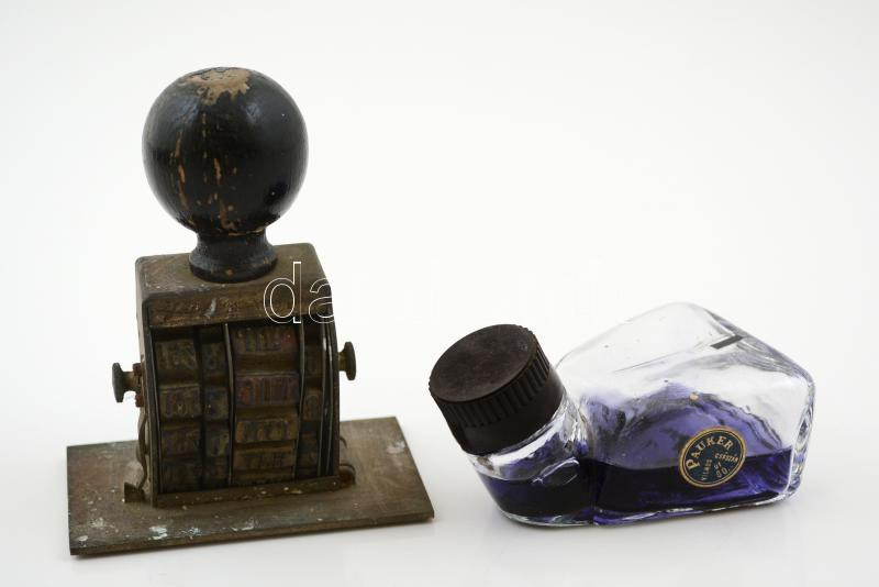 Beschreibung: Régi bélyegző + tintásüveg, tartalommal