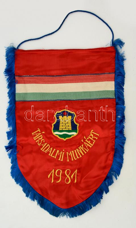 Retro címeres selyem zászló, "Társadalmi munkáért 1981", 46×31 cm https://www.darabanth.com/de/287-Fernauktion/287.0/Andere-Sammelgebiete/Flohmarkt~100011/Retro-cimeres-selyem-zaszlo-Tarsadalmi-munkaert-1981-46C39731-cm~II1508094