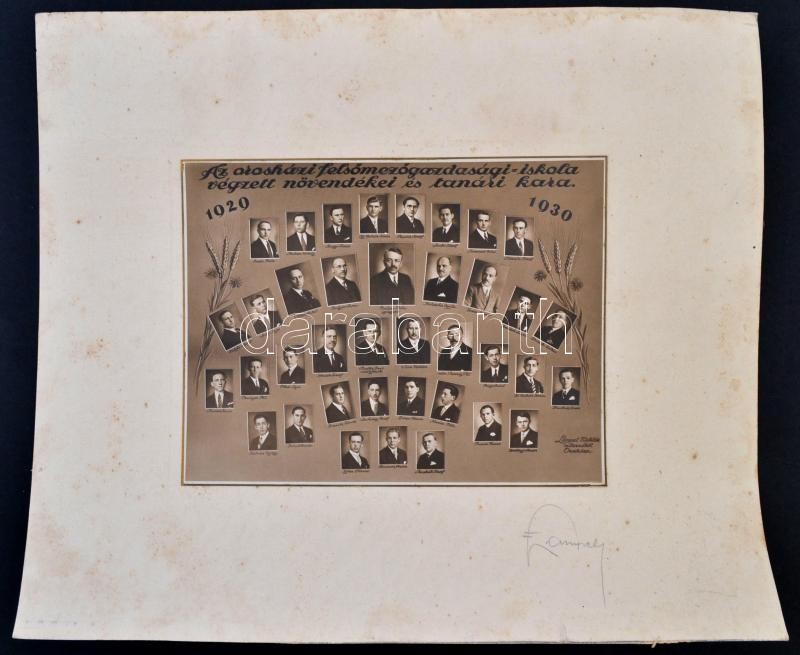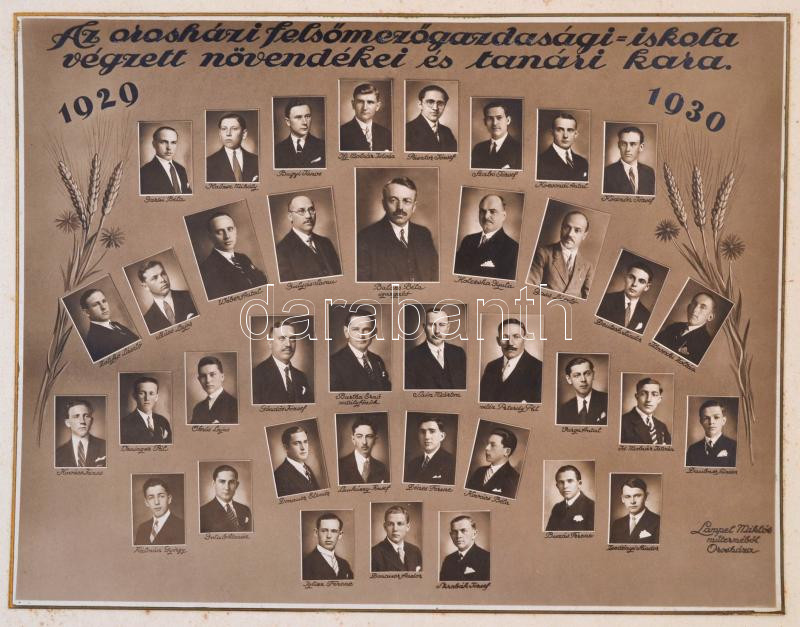 1930 Az orosházi felsőmezőgazdasági iskola végzett növendékei és tanár... https://www.darabanth.com/de/287-Fernauktion/287.0/Andere-Sammelgebiete/Foto~100019/1930-Az-oroshazi-felsomezogazdasagi-iskola-vegzett-novendekei-es-tanari-kara-tablofoto-n~II1506912