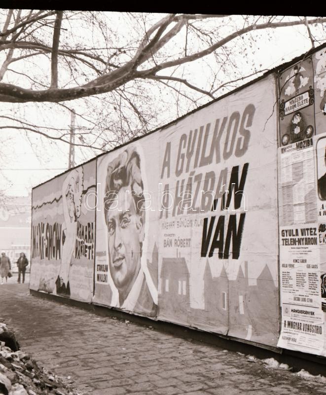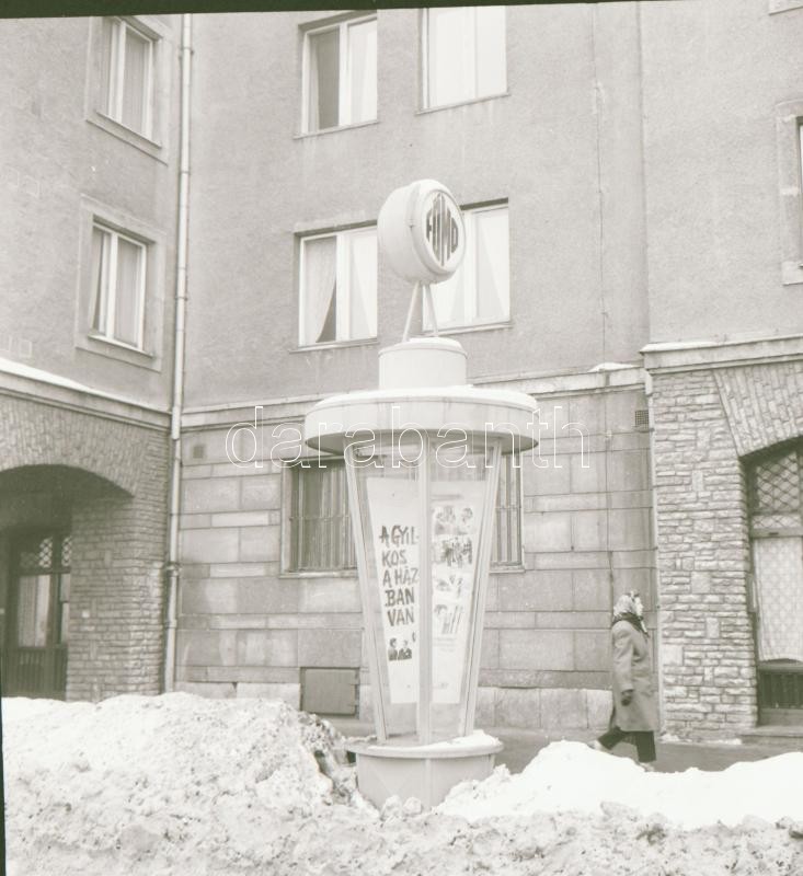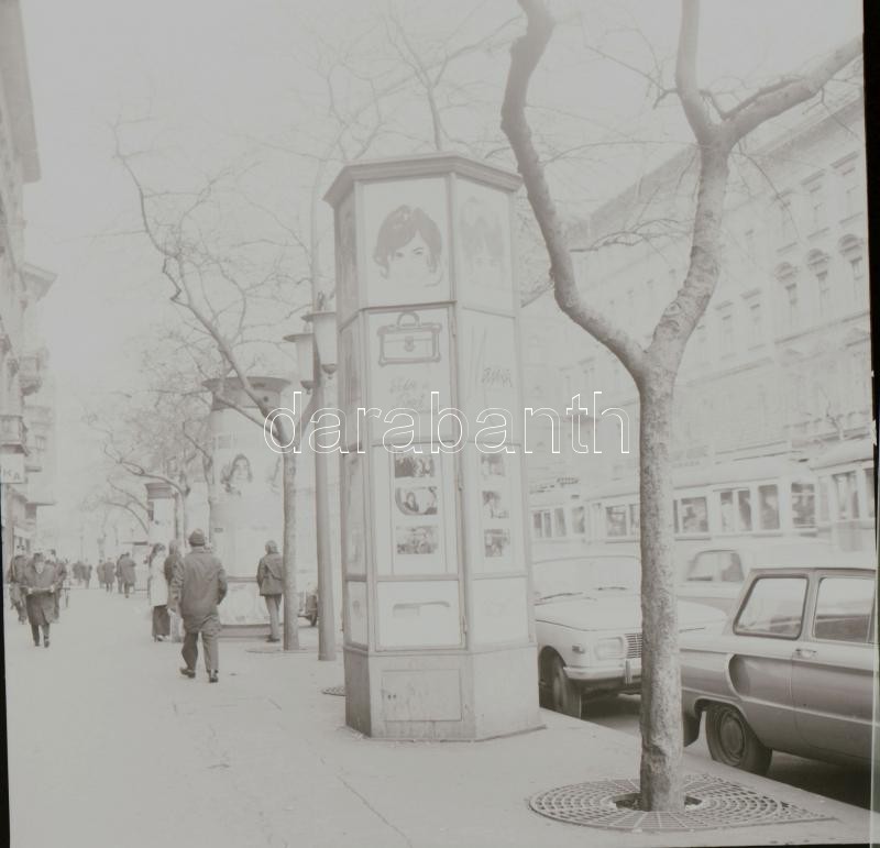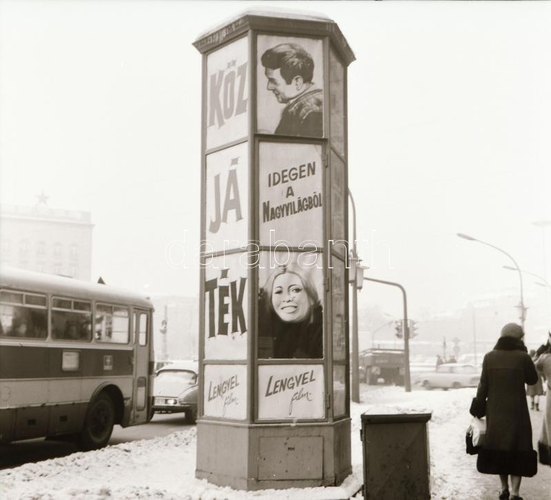 cca 1971 Budapest, a Fővárosi Moziüzemi Vállalat hirdető oszlopai, plakáthelyei, kirakatai, ahol az új filmeket hirdették, 13 db szabadon felhasználható, vintage negatív, 6x6 cm