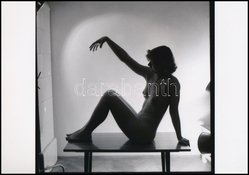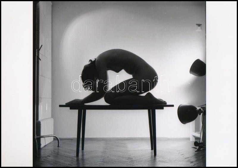 cca 1974 Kisasztalon megkomponált leányzó, 3 db szolidan erotikus fénykép, korabeli vintage negatívokról készült mai nagyítások, 25x18 cm / 3 erotic photos, 25x18 cm