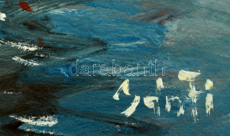 Beschreibung: Bánfi jelzéssel: Vitorlások a tavon. Olaj, karton, 25×35 cm