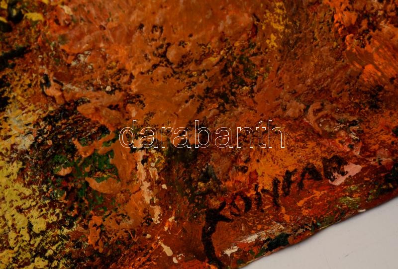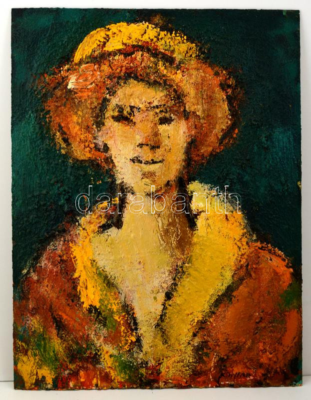 Beschreibung: Konfár Gyula (1933- 2008): Leány portré. Olaj, farost, jelzett, 80×60 cm