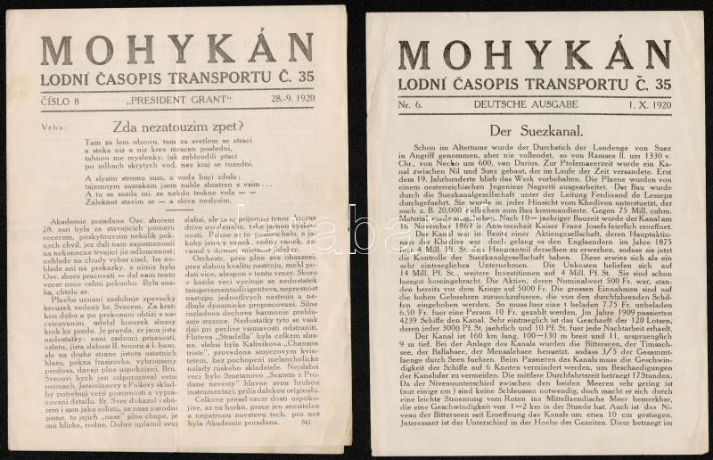1920 Mohikan a 35. szállítmány hajóújságja. Magyar és német kiadások. Többnyelvű hadifogoly újság 4-6, 8. számok. A Szibériai hadifogságból hazaszállítottak újságja. / POW magazine in German, Hungarian and Czech language