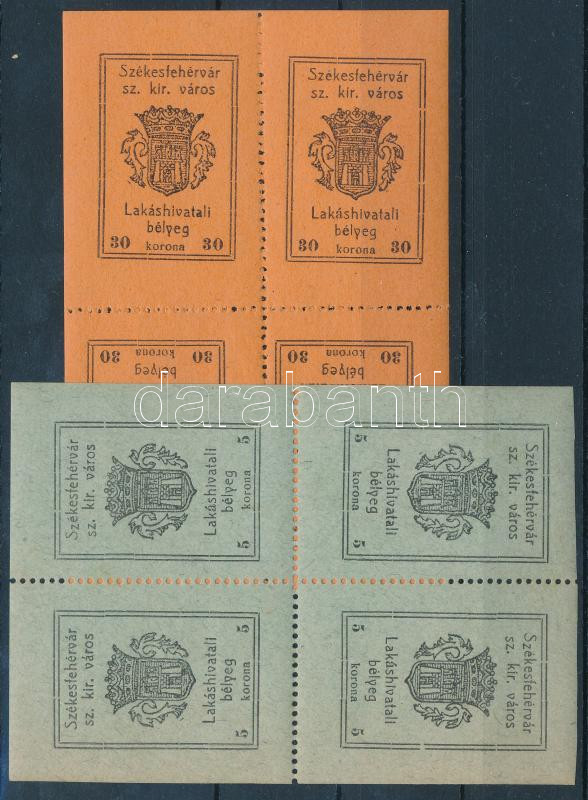 1920 Székesfehérvár, Lakáshivatali illetékbélyeg négyestömbök 5K, 10K,... https://www.darabanth.com/de/287-Fernauktion/287.0/Andere-Sammelgebiete/Stempelmarken~100015/1920-Szekesfehervar-Lakashivatali-illetekbelyeg-negyestombok-5K-10K-3K~II1502132