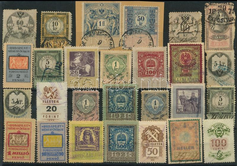 Beschreibung: 27 osztrák és magyar okmánybélyeg sok régivel