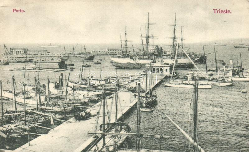 Trieste, Porto / port, harbor, steamships (EK) https://www.darabanth.com/de/287-Fernauktion/287.0/Ansichtskarten/Italien~200027/Trieste-Porto-port-harbor-steamships-EK~II1505976