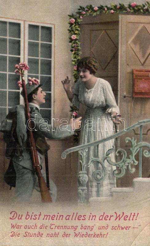 17 db RÉGI első világháborús katonai képeslap és üdvözlőlap, búcsúzás / 17 pre-1945 WWI military postcards and greeting cards, farewells, military couples