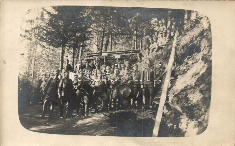 Beschreibung: K.u.K. Infanterieregiment v. Hindenburg No. 58. 15. Feldkompanie, soldiers music band, group photo