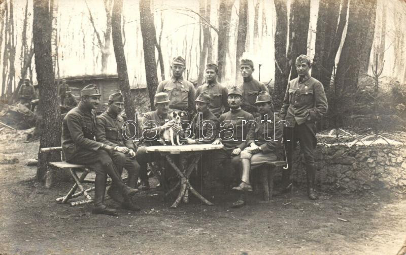 K.u.K. katonák a fronton kutyával / WWI K.u.K. military, soldiers with... https://www.darabanth.com/de/287-Fernauktion/287.0/Ansichtskarten/Militaria~200062/KuK-katonak-a-fronton-kutyaval-WWI-KuK-military-soldiers-with-dog-group-photo~II1507088