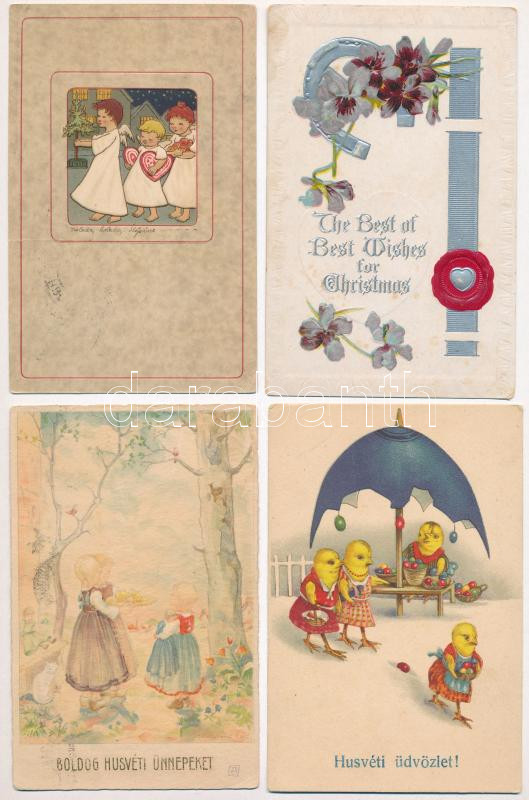 24 db RÉGI motívumos képeslap, üdvözlőlapok (Húsvét, Karácsony, Új Év), több litho és dombornyomott darab / 24 pre-1945 motive postcards, greeting cards (Easter, Christmas, New Year), many litho and Emb.