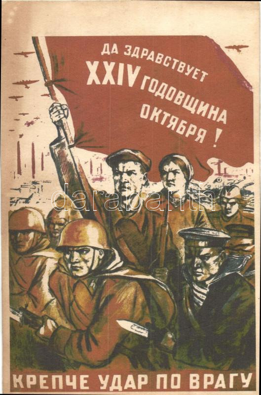 Long live the XXIV. anniversary of October, Stronger against the enemy... https://www.darabanth.com/de/287-Fernauktion/287.0/Ansichtskarten/Propaganda-Politik~200069/Long-live-the-XXIV-anniversary-of-October-Stronger-against-the-enemy-Anniversary-of-the-Great-Oc~II1507121