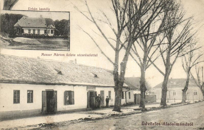 Alsósimánd, Simand; Urbán kastély, Messer Márton üzlete, utca részlet ... https://www.darabanth.com/de/287-Fernauktion/287.0/Ansichtskarten/Siebenburgen~200006/Alsosimand-Simand-Urban-kastely-Messer-Marton-uzlete-utca-reszlet-castle-shop-street-~II1506484