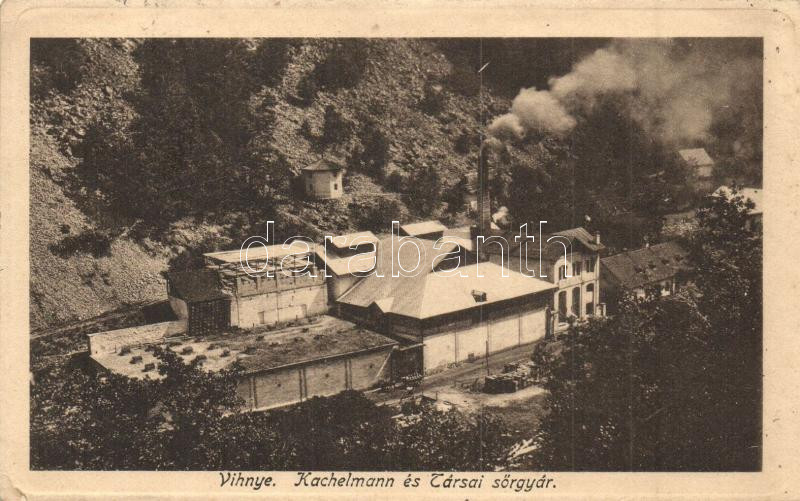 Beschreibung: Vihnye, Vyhnye; Kachelmann és Társai sörgyár, Maksay és Joachim fényképészek kiadása / brewery (EK)