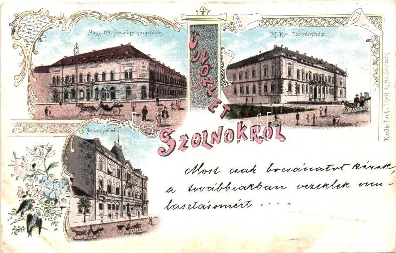 1899 Szolnok, Pénzügyigazgatóság, Törvényház, Nemzeti szálloda, Fuchs ... https://www.darabanth.com/de/287-Fernauktion/287.0/Ansichtskarten/Ungarn~200005/1899-Szolnok-Penzugyigazgatosag-Torvenyhaz-Nemzeti-szalloda-Fuchs-Lipot-floral-litho-E~II1509462