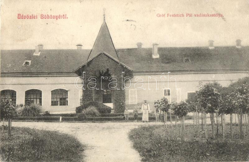 Böhönye, Gróf Festetics Pál vadászkastélya, Weisz Samu kiadása (EK) https://www.darabanth.com/de/287-Fernauktion/287.0/Ansichtskarten/Ungarn~200005/Bohonye-Grof-Festetics-Pal-vadaszkastelya-Weisz-Samu-kiadasa-EK~II1507623